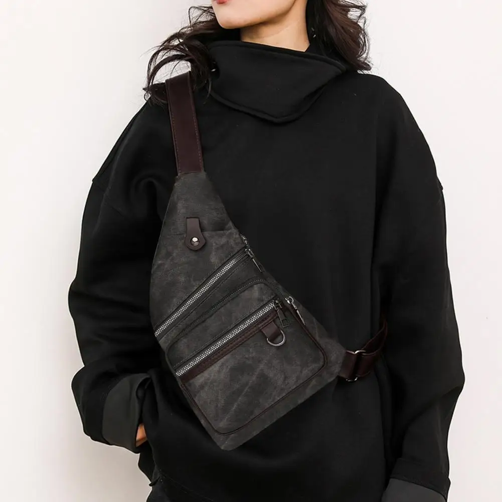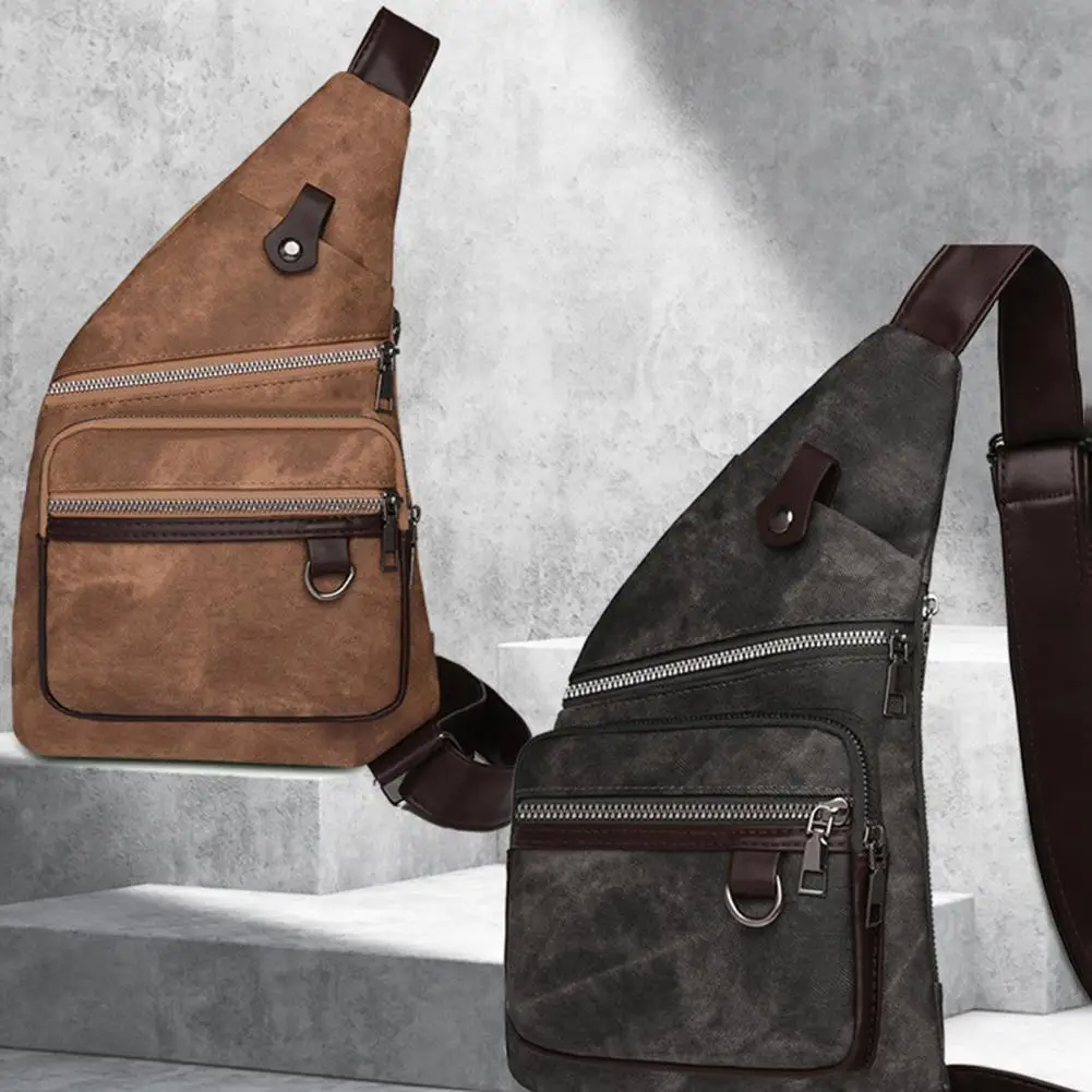 Chest Pack Faux Leather Side Bag Crossbody Sling Adjustable Strap Shoulder Bags Retro Anti Theft Multi Pockets Travel Bag