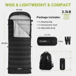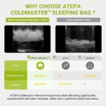 • HIGH-QUALITY MATERIAL: Made of 400T 20D nylon, The lightweight sleeping bag is soft and comfortable. The nylon with special coating is more anti-drilling and water-repellent. The interior is filled with Coldmaster down. Coldmaster down increase heat while still being significantly compressible and water-resistant. When wet, it performs better than simple down. Extreme temperature: -5.8°F, limit temperature: 24°F, comfort temperature: 33°F, it provides warmth as a 4 season sleeping bag.